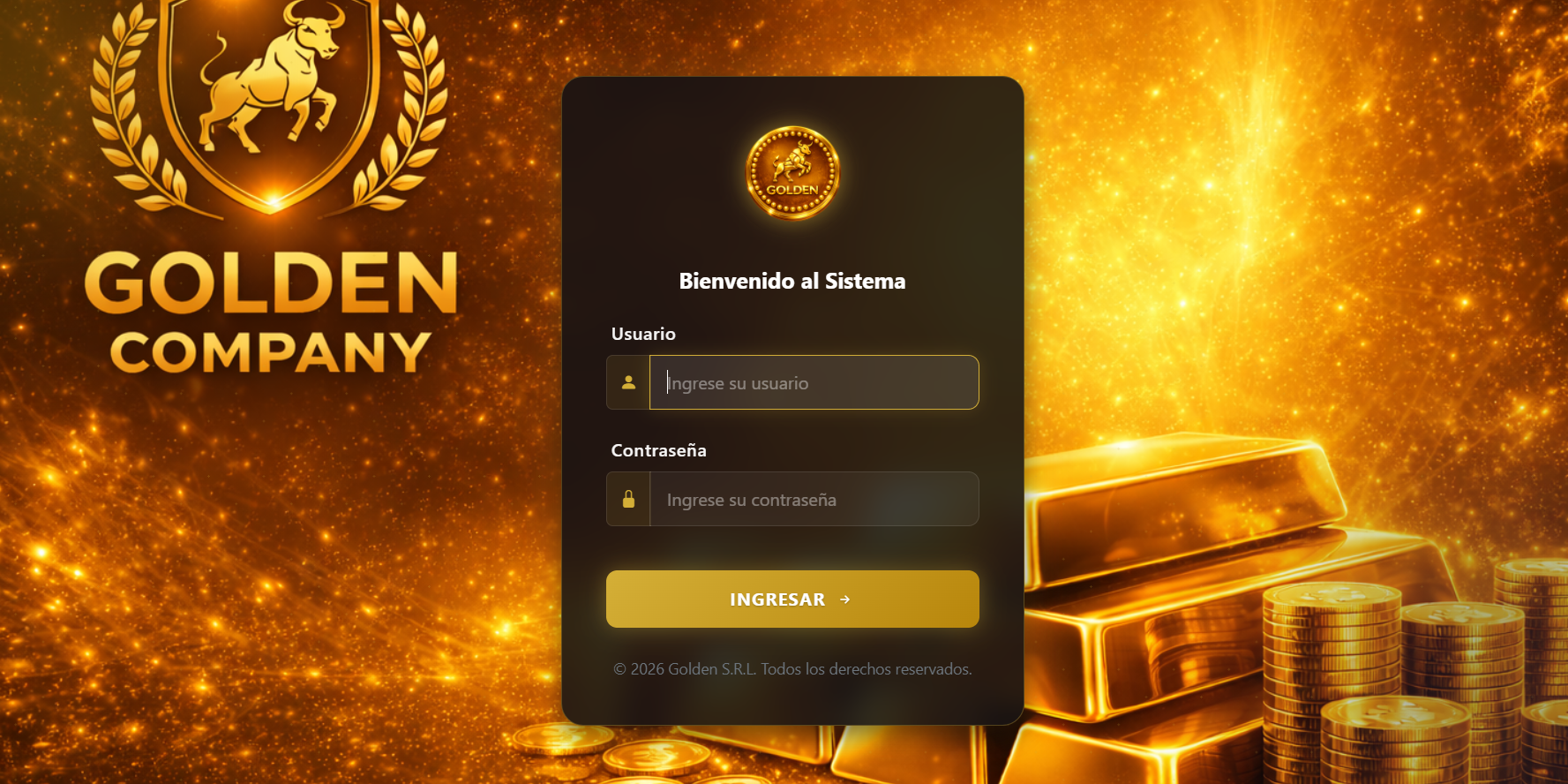 El sistema es una aplicación web que ayuda a la empresa Golden S.R.L. a organizar y automatizar la compra y venta de oro. Permite registr...