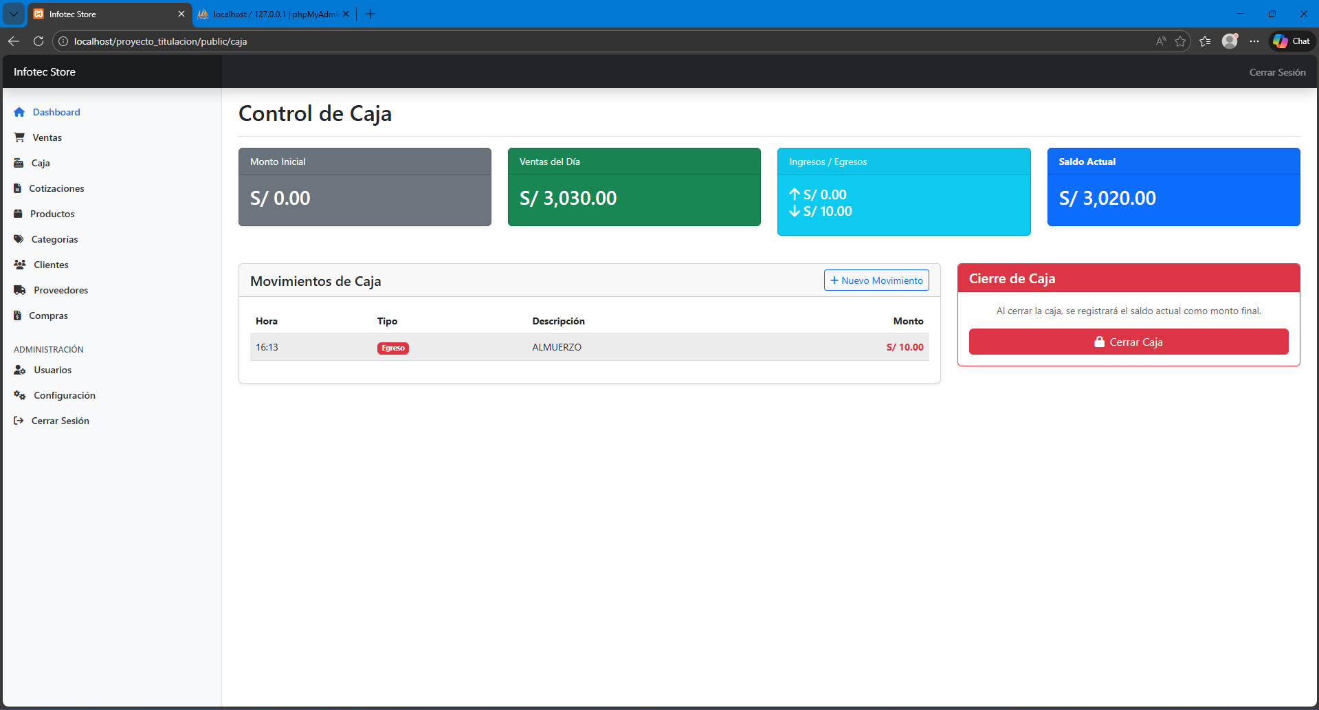 sistema de gestión de ventas para el control de ventas, inventarios, clientes, proveedores y cotizaciones para la empresa de INFOTEC STOR...